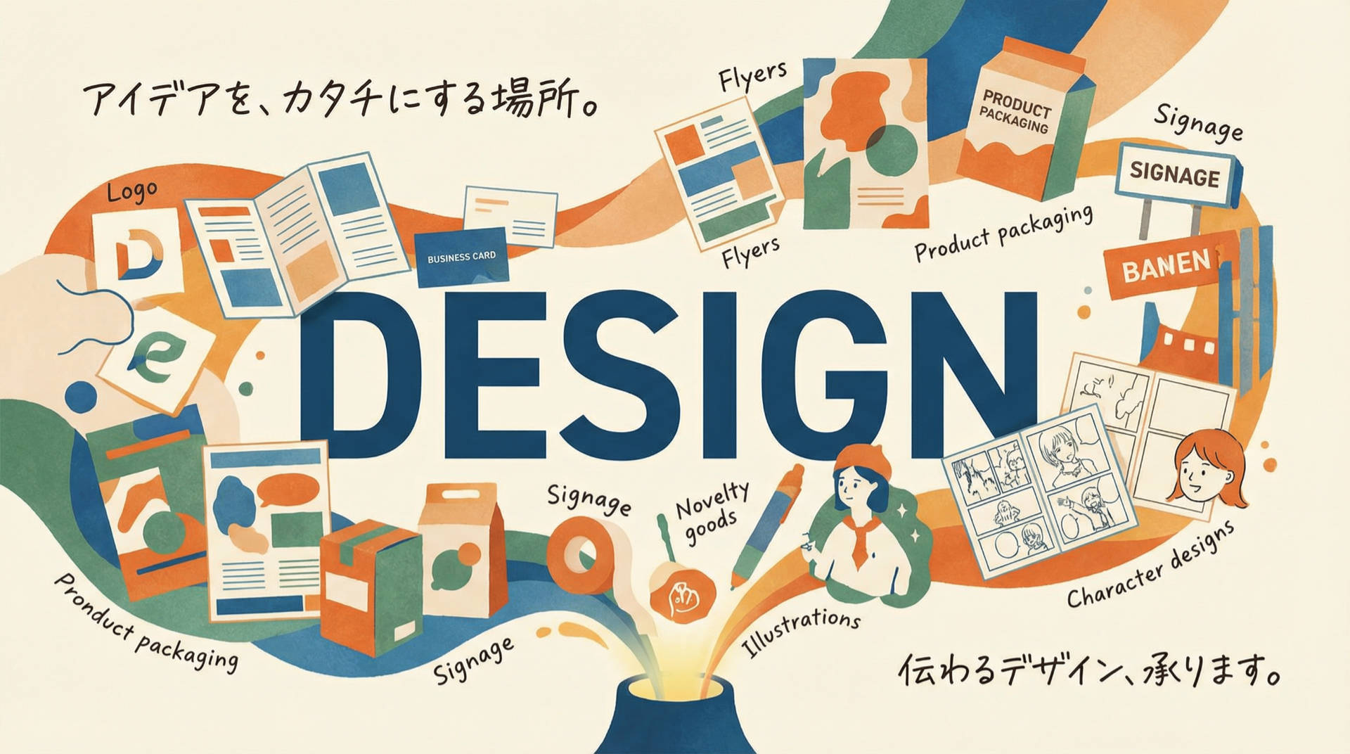 商品やサービスの魅力は、第一印象で決まります。 「もっと集客したい」「商品の良さを一瞬で伝えたい」。そんな御社の熱い想いを、私たちはデザインの力でカタチにします。